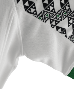 The Nigeria 2022 Home Jersey is a striking design that captures the energy and flair of the Super Eagles. Featuring a vibrant green base with intricate black and white patterns on the sleeves, this jersey blends traditional Nigerian artistry with modern football aesthetics. Designed for both comfort and performance, it is perfect for matchdays and casual wear.
