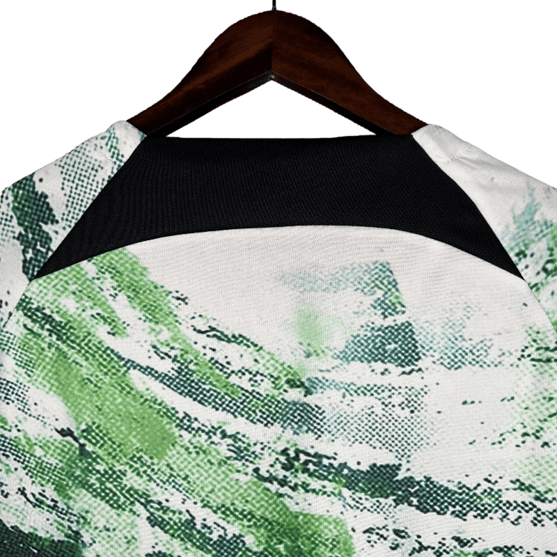 The Nigeria 2023 Special Edition Jersey pays homage to the nation’s rich cultural heritage with a vibrant design that stands out both on and off the pitch. This jersey features a unique pattern inspired by traditional Nigerian art, blending green and white hues that symbolize peace and unity. Crafted with Nike’s Dri-FIT technology, it ensures optimal comfort by wicking sweat away from the skin, making it ideal for both match days and casual wear.