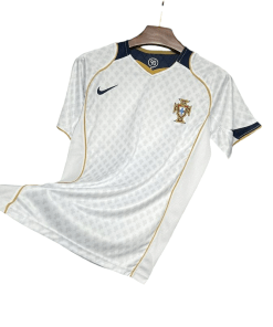 The Portugal Retro 2004 Away jersey is a nostalgic tribute to the kit worn by the Portuguese national team during their memorable run in the 2004 European Championship. Featuring the classic navy blue color, this jersey is crafted from high-quality fabric that replicates the look and feel of the original. The design incorporates subtle red and green accents that highlight Portugal’s national colors, while the iconic crest is proudly displayed on the chest, symbolizing the pride and heritage of Portuguese football. This retro jersey is perfect for fans who want to relive the excitement of Portugal’s 2004 campaign and celebrate the nation’s footballing legacy with a classic piece of apparel.