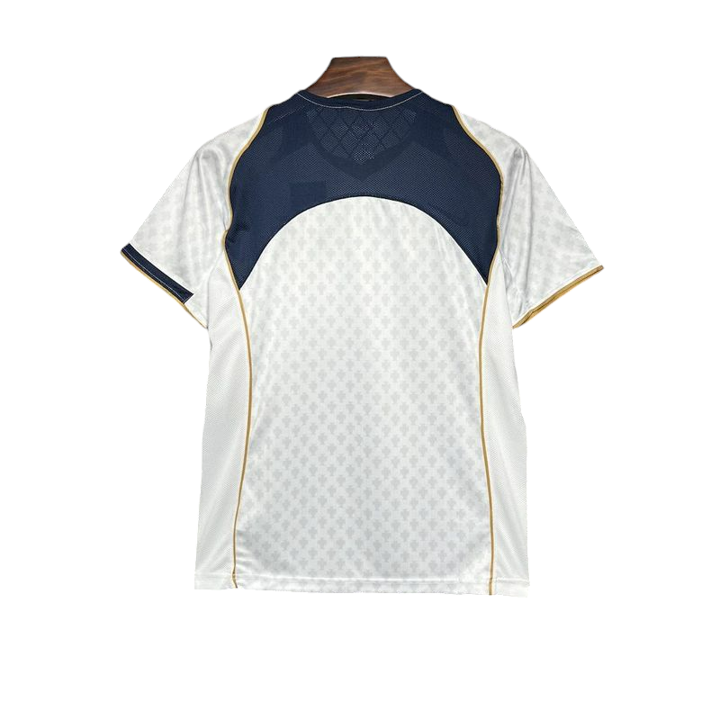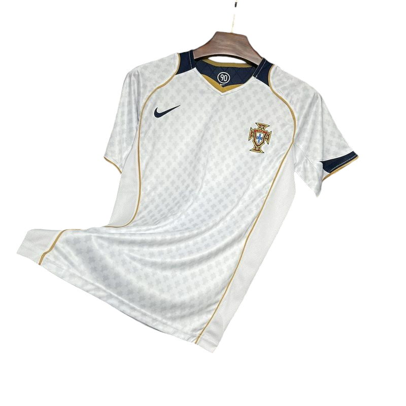 The Portugal Retro 2004 Away jersey is a nostalgic tribute to the kit worn by the Portuguese national team during their memorable run in the 2004 European Championship. Featuring the classic navy blue color, this jersey is crafted from high-quality fabric that replicates the look and feel of the original. The design incorporates subtle red and green accents that highlight Portugal’s national colors, while the iconic crest is proudly displayed on the chest, symbolizing the pride and heritage of Portuguese football. This retro jersey is perfect for fans who want to relive the excitement of Portugal’s 2004 campaign and celebrate the nation’s footballing legacy with a classic piece of apparel.