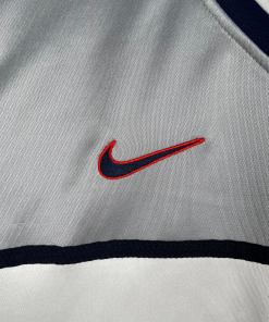 The PSG Retro 1999/2000 Away Jersey brings back an iconic design from an exciting era for Paris Saint-Germain. Featuring a clean white base with striking red and blue accents, this jersey represents the club’s ambition and attacking football during their European campaigns. Crafted for comfort and nostalgia, it’s a must-have for any devoted PSG supporter.