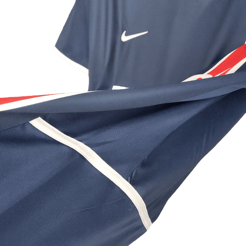The PSG Retro 2002/2003 Home Jersey revives the club’s iconic navy blue design with the signature bold red vertical stripe, a defining look of Paris Saint-Germain. This jersey represents a thrilling era for the club, highlighted by the magic of Ronaldinho, who mesmerized fans with his skill and creativity. Designed for comfort and nostalgia, it’s a must-have for any devoted PSG supporter.