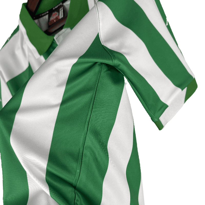 A must-have for Real Betis fans, this retro home jersey celebrates a season of redemption and triumph. Whether reliving the past or showing off your Verdiblanco pride, this jersey is a timeless addition to any collection.