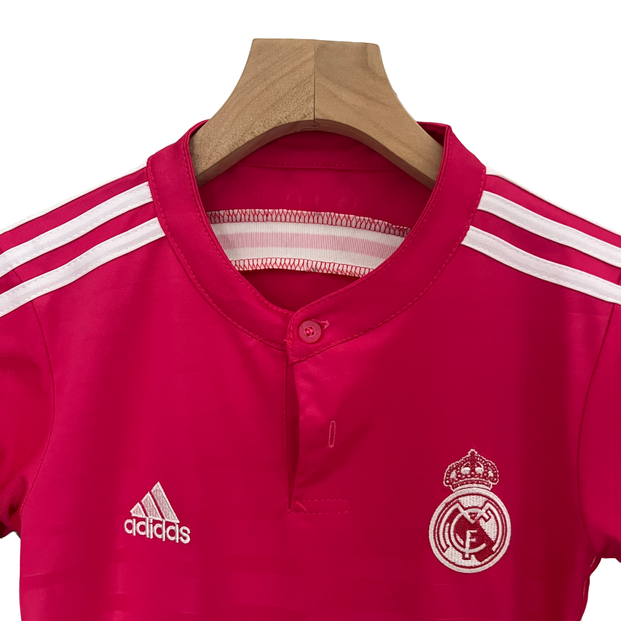 The Real Madrid 2014/2015 Kids Away Jersey features a striking pink design, a bold departure from tradition that made it one of the most unique kits in club history. Worn during an exciting season, this jersey symbolizes the fearless spirit of Los Blancos as they competed for glory. Crafted from lightweight, breathable fabric, it ensures comfort and style for young fans.