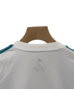 The Real Madrid 2017/2018 Kids Home Jersey features the club’s iconic all-white design with sleek teal accents, representing elegance and dominance. This jersey was worn during one of the most historic seasons in Real Madrid’s history, as Los Blancos continued their reign over European football. Designed for comfort and style, it’s perfect for young Madridistas who dream of greatness.