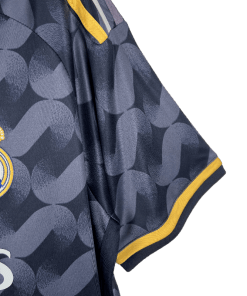 The Real Madrid 2023/2024 Away Jersey brings a fresh and dynamic design to the club’s storied legacy. With a striking navy base complemented by elegant gold details, this jersey represents the ambition and class of Los Blancos on their travels. Engineered for comfort and performance, it’s perfect for showing your Madridista pride wherever you go.