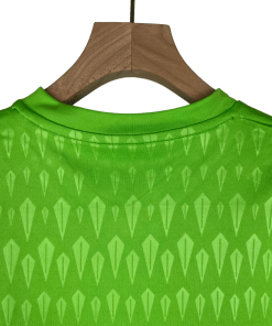 The Real Madrid 2023/2024 Kids Goalkeeper Jersey in green is designed for young goalkeepers who dream of making big saves like their idols. With a bold and vibrant color scheme, this jersey ensures standout style while offering comfort and flexibility for the next generation of shot-stoppers.