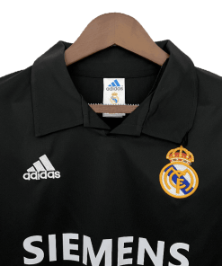 The Real Madrid 2002/2003 Away Jersey is a stunning piece from one of the most iconic seasons in the club’s history. Featuring a sleek black design with white accents, this jersey was worn during crucial away matches as Los Blancos secured the La Liga title and continued their reign as one of the best teams in the world.