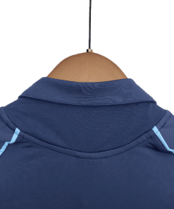 The Real Madrid 2005/2006 Away Jersey represents an era of star-studded football, featuring a sleek deep navy design with silver accents. Worn during key away matches in La Liga and the UEFA Champions League, this jersey captures the elegance and attacking style of the Galácticos era.