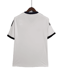 The Real Madrid 2012/2013 Home Jersey is a classic representation of Los Blancos’ determination and attacking brilliance. Featuring the club’s signature all-white design with navy blue accents, this jersey was worn during an intense season in La Liga and the UEFA Champions League under José Mourinho’s leadership.