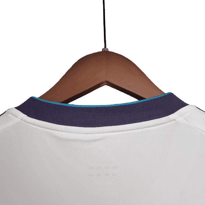 The Real Madrid 2012/2013 Home Jersey is a classic representation of Los Blancos’ determination and attacking brilliance. Featuring the club’s signature all-white design with navy blue accents, this jersey was worn during an intense season in La Liga and the UEFA Champions League under José Mourinho’s leadership.