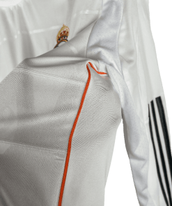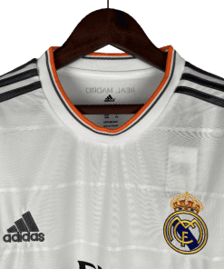 The Real Madrid 2013/2014 Home Jersey is an unforgettable piece of history, marking the club’s legendary run to their long-awaited 10th UEFA Champions League title, “La Décima.” With its clean all-white look and elegant orange detailing, this long-sleeve edition adds a classic touch to a truly historic jersey.