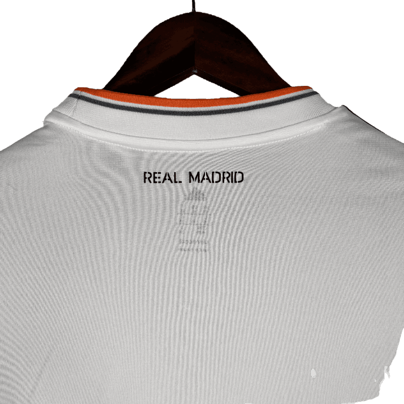 The Real Madrid 2013/2014 Home Jersey is an unforgettable piece of history, marking the club’s legendary run to their long-awaited 10th UEFA Champions League title, “La Décima.” With its clean all-white look and elegant orange detailing, this long-sleeve edition adds a classic touch to a truly historic jersey.