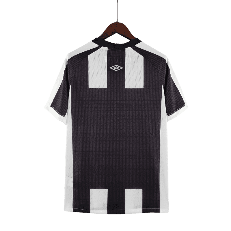 The Santos 2022/2023 Away Jersey introduces a striking design with bold black and white vertical stripes, accented by gold trims that add a touch of elegance. This jersey features the club’s crest prominently on the chest, symbolizing pride and tradition. Crafted from high-quality materials, it ensures comfort and durability, making it perfect for both match days and casual wear.