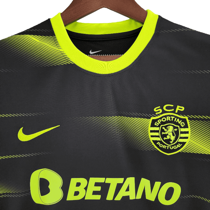 The Sporting Lisbon 2022/23 Away Jersey delivers a striking design, perfect for commanding performances away from home. Combining modern aesthetics with the club’s rich history, this jersey was worn as Sporting CP battled in the Primeira Liga and European competitions, showcasing their strength and ambition.