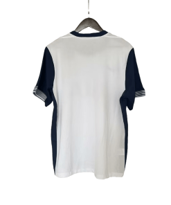- Design and Colors: The jersey combines a classic white body with deep navy accents on the sleeves, side panels, and collar, offering a contemporary twist on a timeless look.