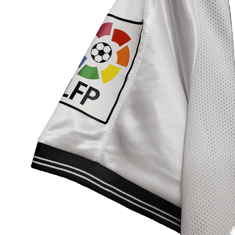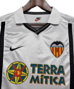 The Valencia 2000/2001 Retro Home jersey is a nostalgic piece from a golden era in the club’s history. Featuring the classic white design with black accents, this jersey recalls Valencia’s dominance in Spain and Europe. Worn during an unforgettable Champions League campaign, this vintage kit is a must-have for any fan of Los Che.