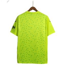 Introducing the Wolverhampton Wanderers 2023/24 goalkeeper away jersey, featuring a vibrant lime green base with black accents. This striking design is crafted to provide both standout style and optimal performance for goalkeepers during away matches in the 2023/24 season.
